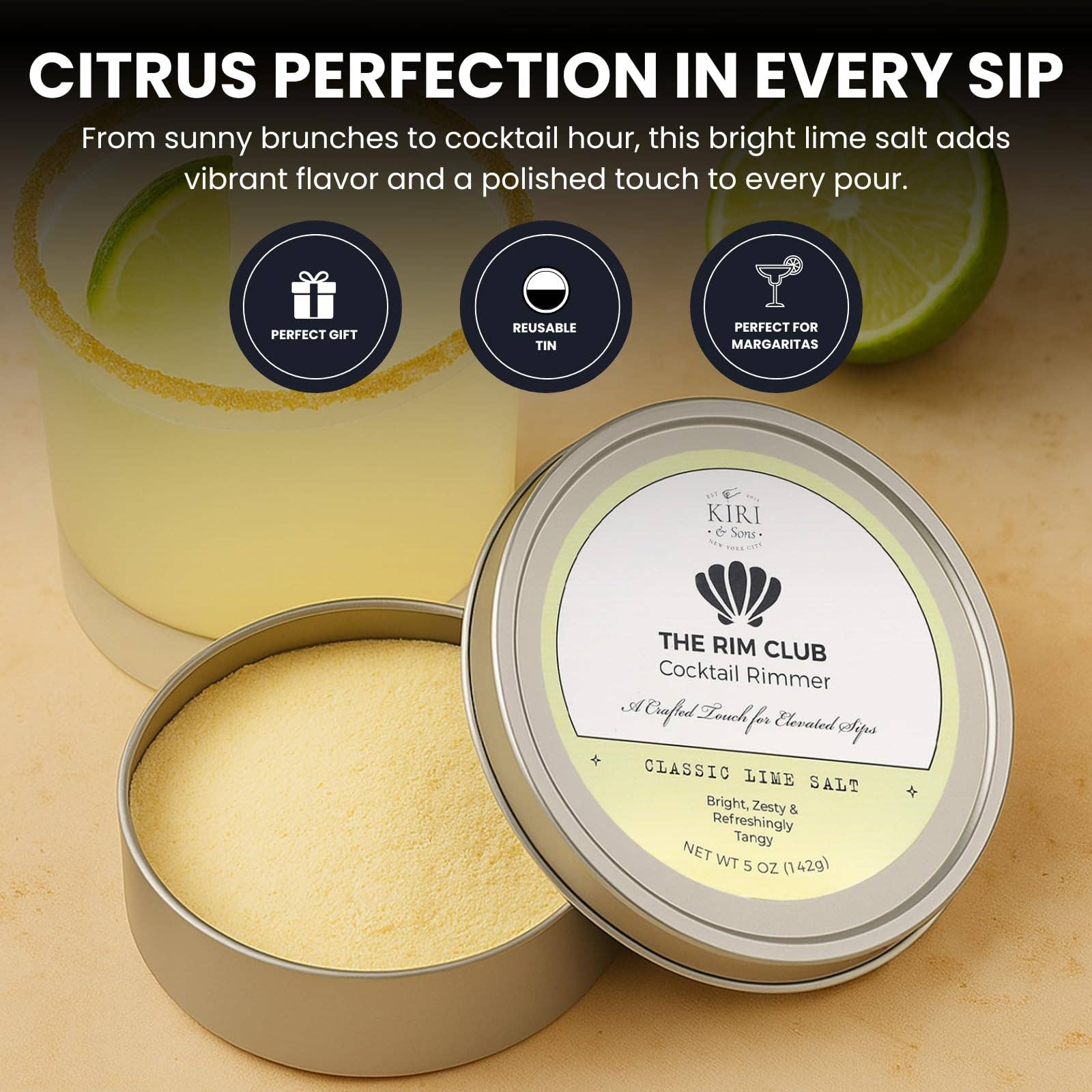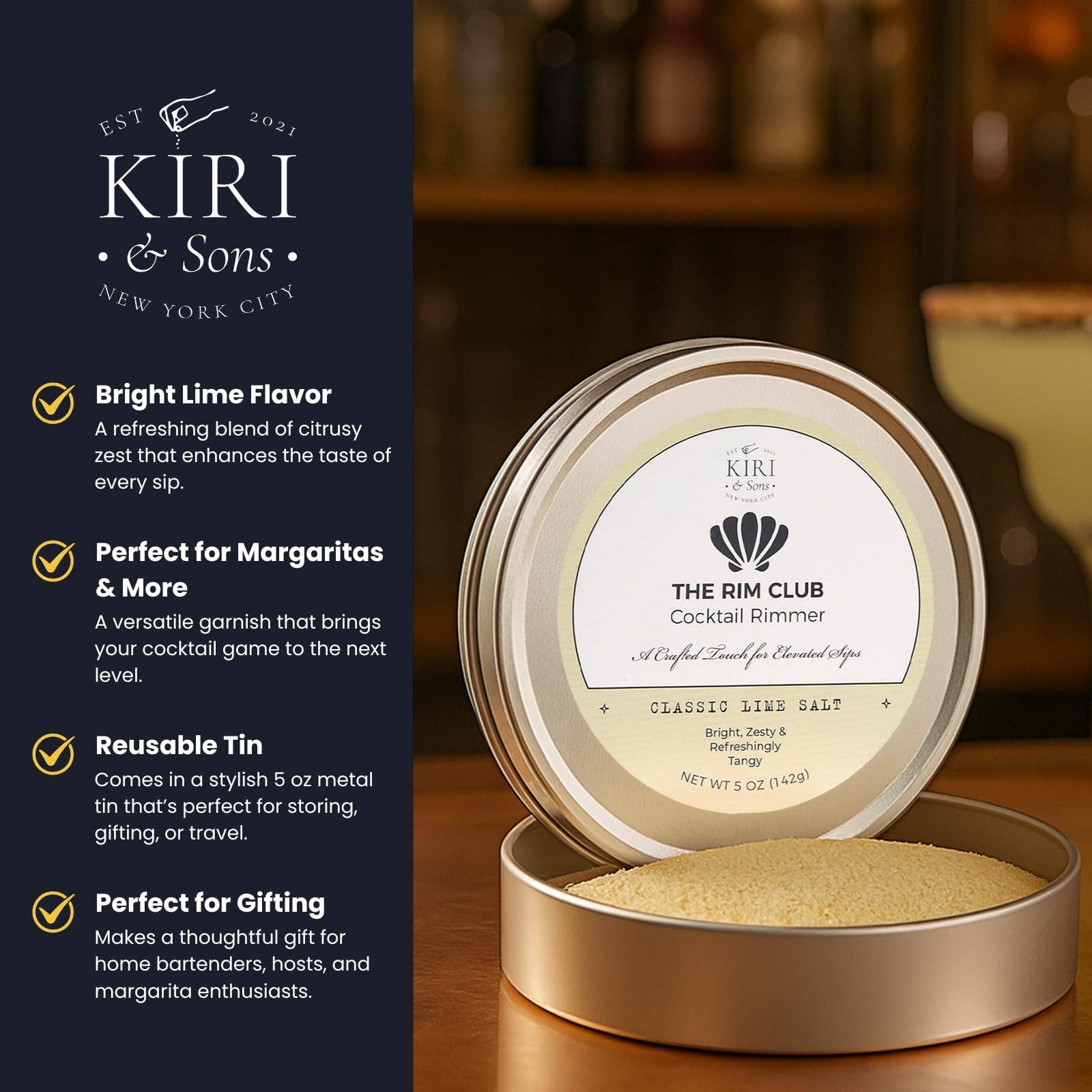 Add a zesty twist to your cocktails with Kiri & Sons Margarita Salt Cocktail Rimmer, the ultimate mixology accessory for both home and professional use. This garnish delivers a bold citrus flavor that enhances margaritas, tequila shot rims, mojitos, micheladas, and palomas. Its bright rim dust provides a visually appealing glass rimming finish while balancing tangy and salty notes for a beverage-enhancing experience. Perfect for brunch, happy hour, or evening entertaining, this 5oz gift set fits seamlessly into any home bar essentials or party supplies collection. The sleek reusable tin makes application easy and mess-free, making it a premium tool for bartenders, hosts, and cocktail lovers.