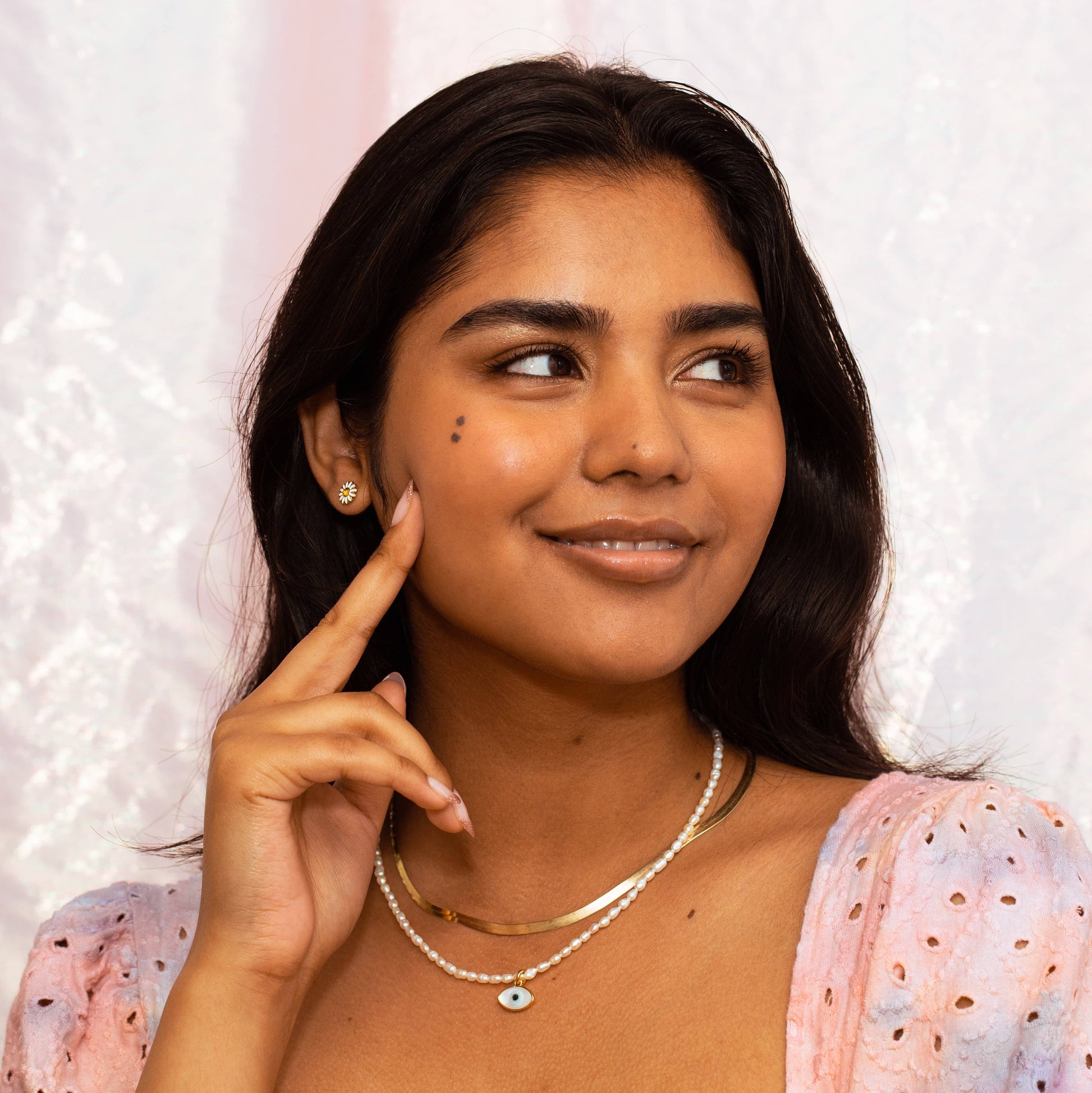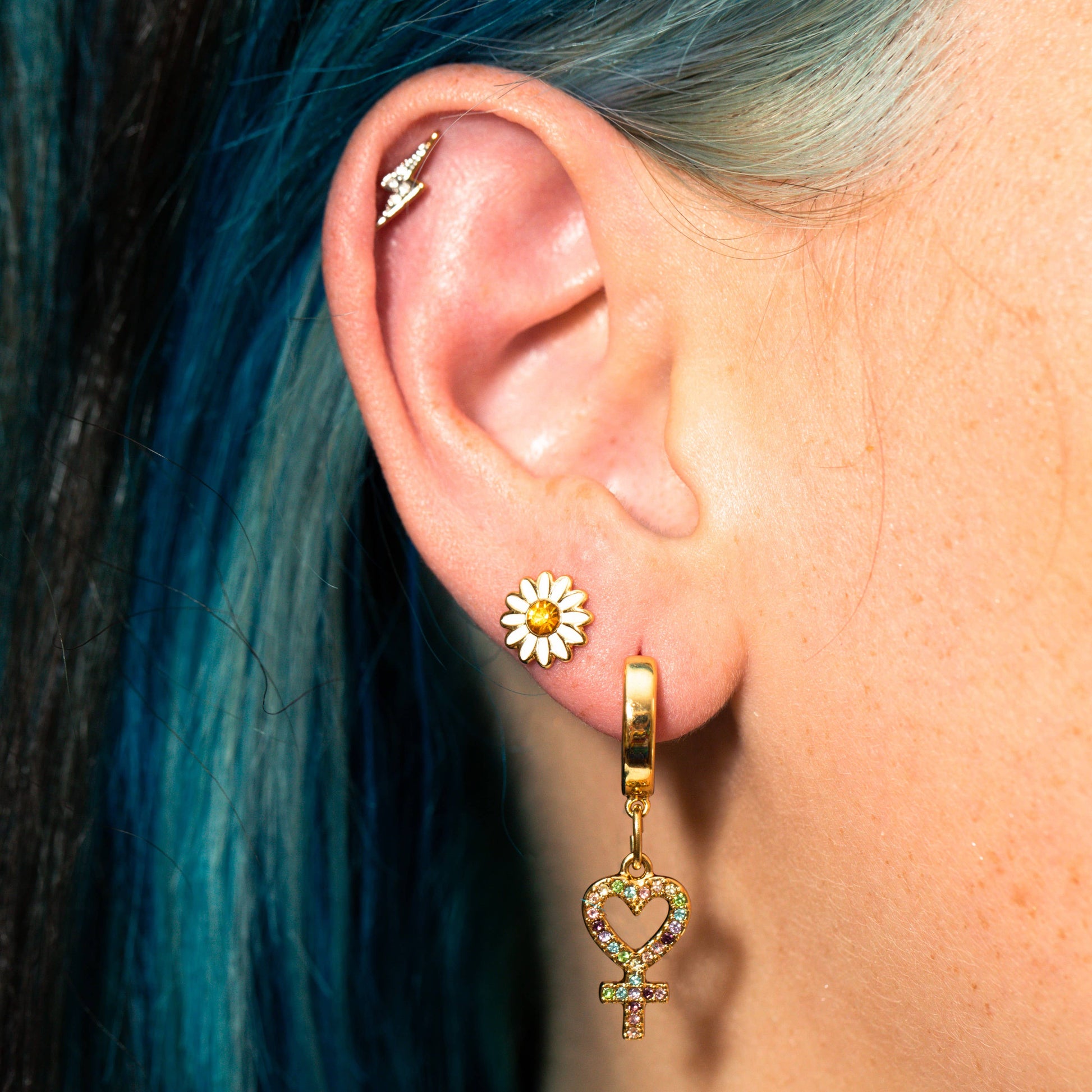 Daisy stud earrings are so cute for the flower child! Hard enamel in bright white & yellow accented with polished gold. Wildflower + Co.