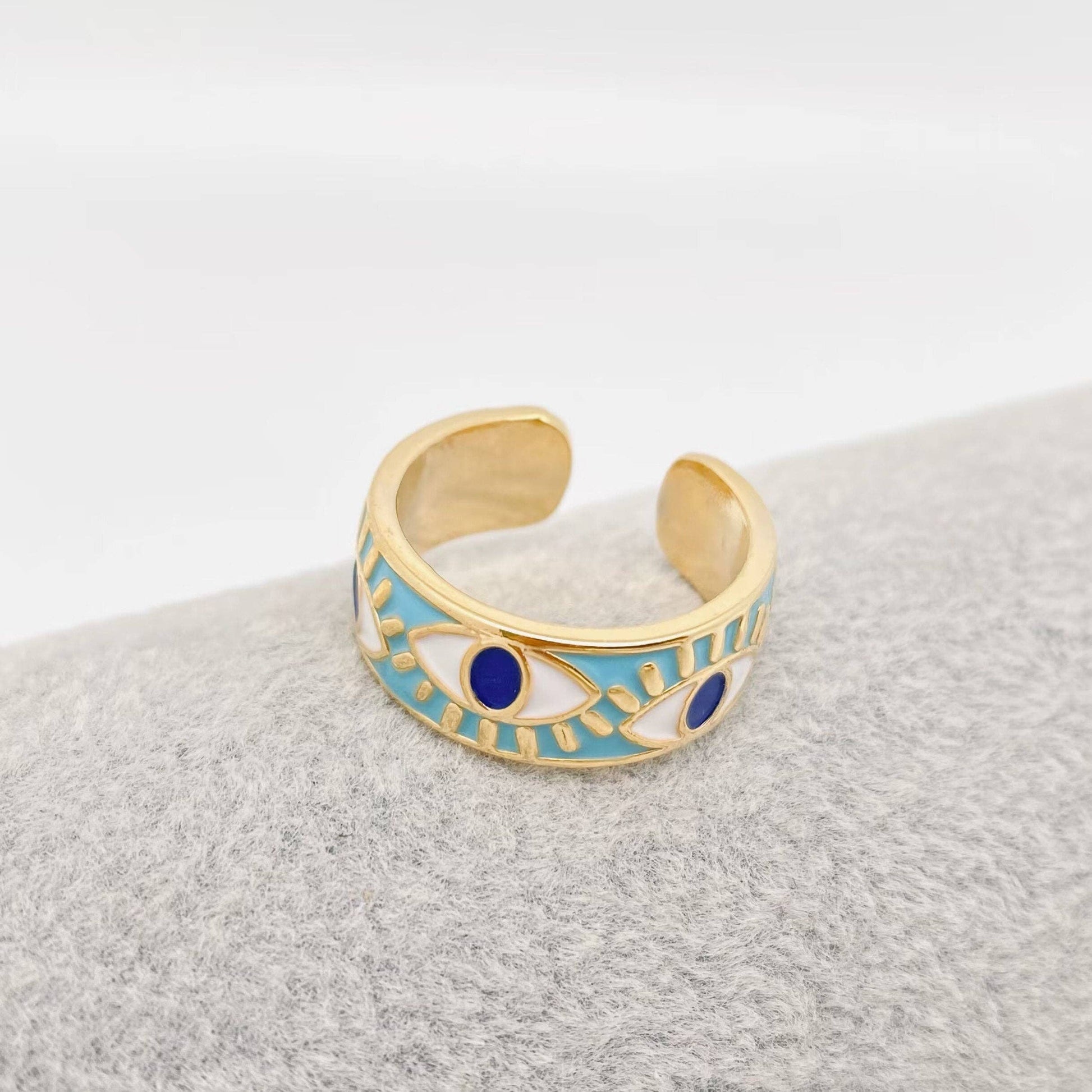 Enamel Gold-Plated Evil Eye Ring