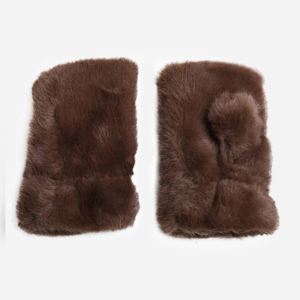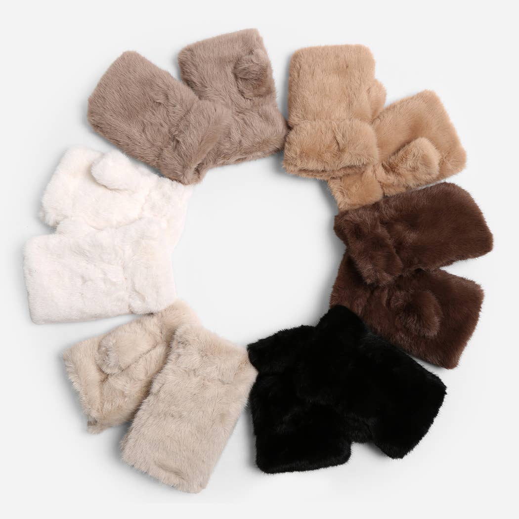 Stay warm and stylish with these Solid Color Faux Fur Fingerless Gloves.