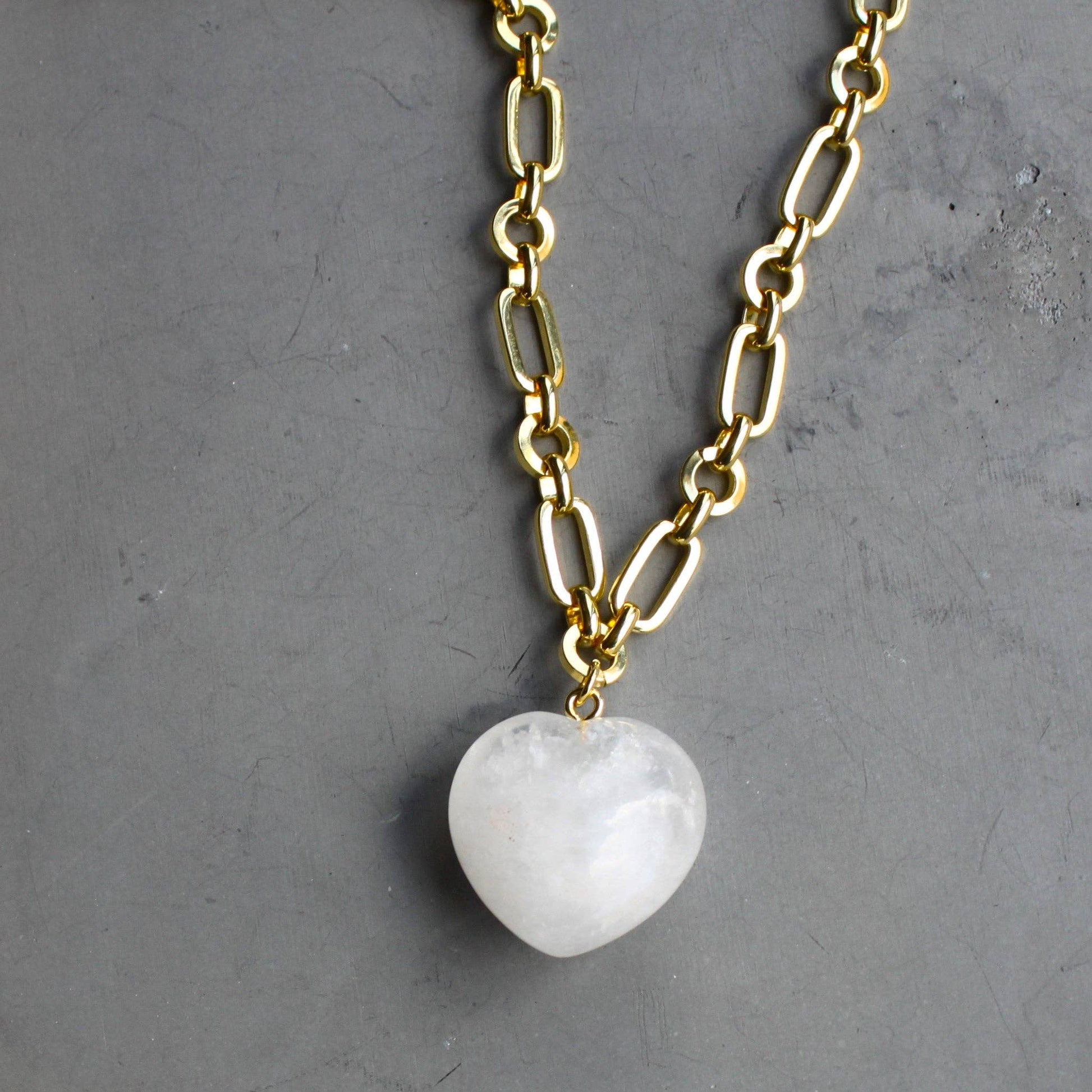 Our stone heart pendant necklace is a must have for layering! Your choice of stone heart on a chunky gold chain is a perfect gift.