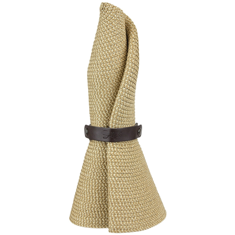 Sun hats are difficult to travel with. They tend to be misshapen and wrinkled once you get to where you're going. They never pack well flat. But wait, now there's a solution. Just roll - snap - go with the new Roll-n-Go Sun Hat. A revolutionary design that allows you to roll the sun hat tight so it's easy to pack. The braided leatherette roll strap with snap also doubles as a decorative addition. Four classic styles and free knock-down display with opening order. It's a snap!